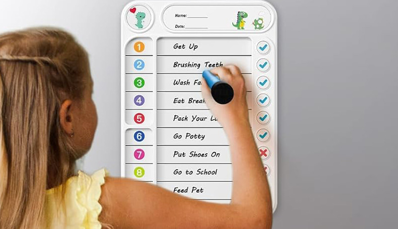 Les tâches sont découpées en blocs clairs : “Je commence – Je fais – J’ai terminé”.Chaque étape réussie est validée par une action visible (collant, jeton, couleur). Résultat : moins de charge mentale, plus de satisfaction immédiate.